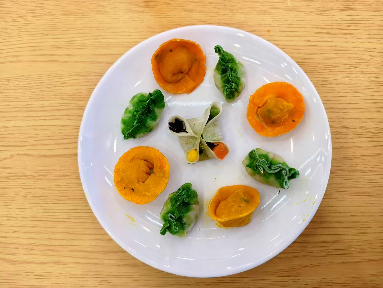 大赛前,参赛选手们在食品工艺实验室大展身手。在比赛的过程中,选手们表现得井然有序,他们以集体的智慧为指引,创作出了五花八门、创意无限的作品。他们将饺子视作画布,以温馨的情感作为颜料,描绘出自己的青春风采。各参赛队伍将面粉变幻出各种形态,利用五味俱全的馅料来表达他们内心的期盼,力图让每一件作品都成为一首青春的赞歌。参赛者们用他们饱满的热情展现出青春的风采,塑造了“祥瑞”、“和和美美”、“福泽”、“‘饺’踏实地”等主题,别具匠心的作品又体现了同学们的团结一致凝聚力。色彩和谐的创作,仿佛让人置身于一场视觉的盛宴。此外,学子们还巧妙地制作了美味的糖葫芦和棉花糖,让大家在寒冷的冬日也能体会到温暖与甜蜜。