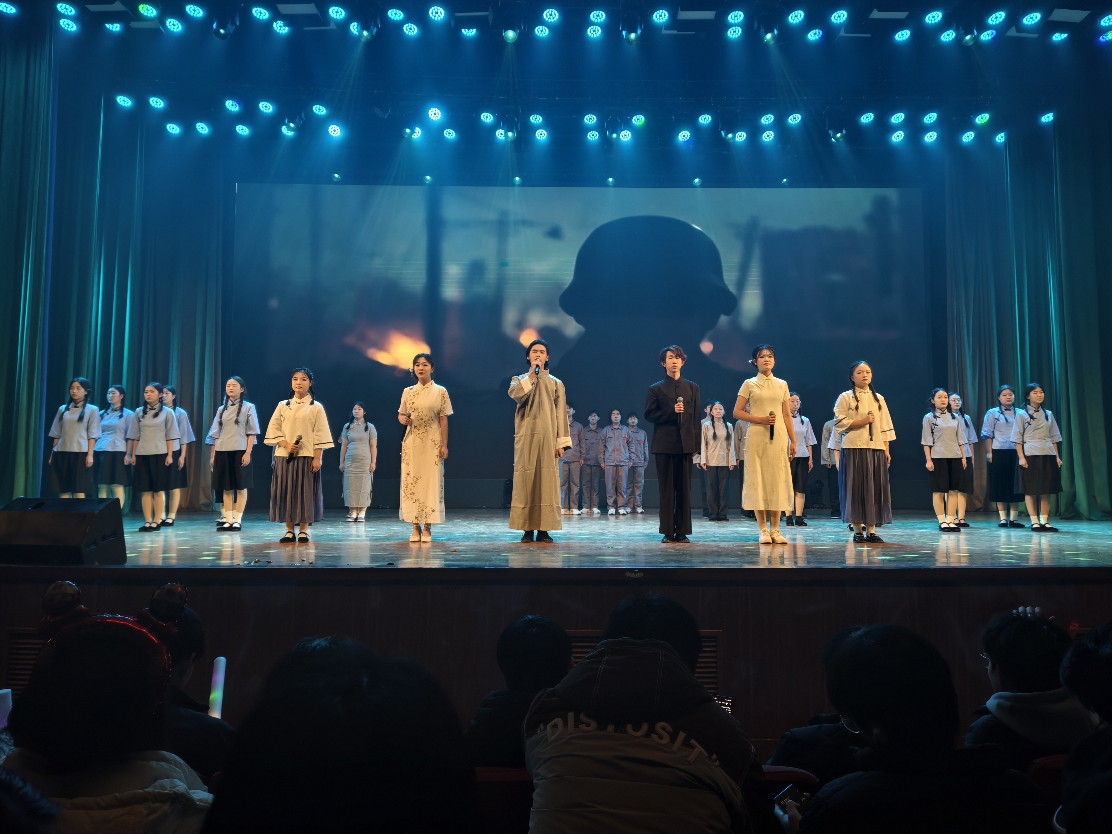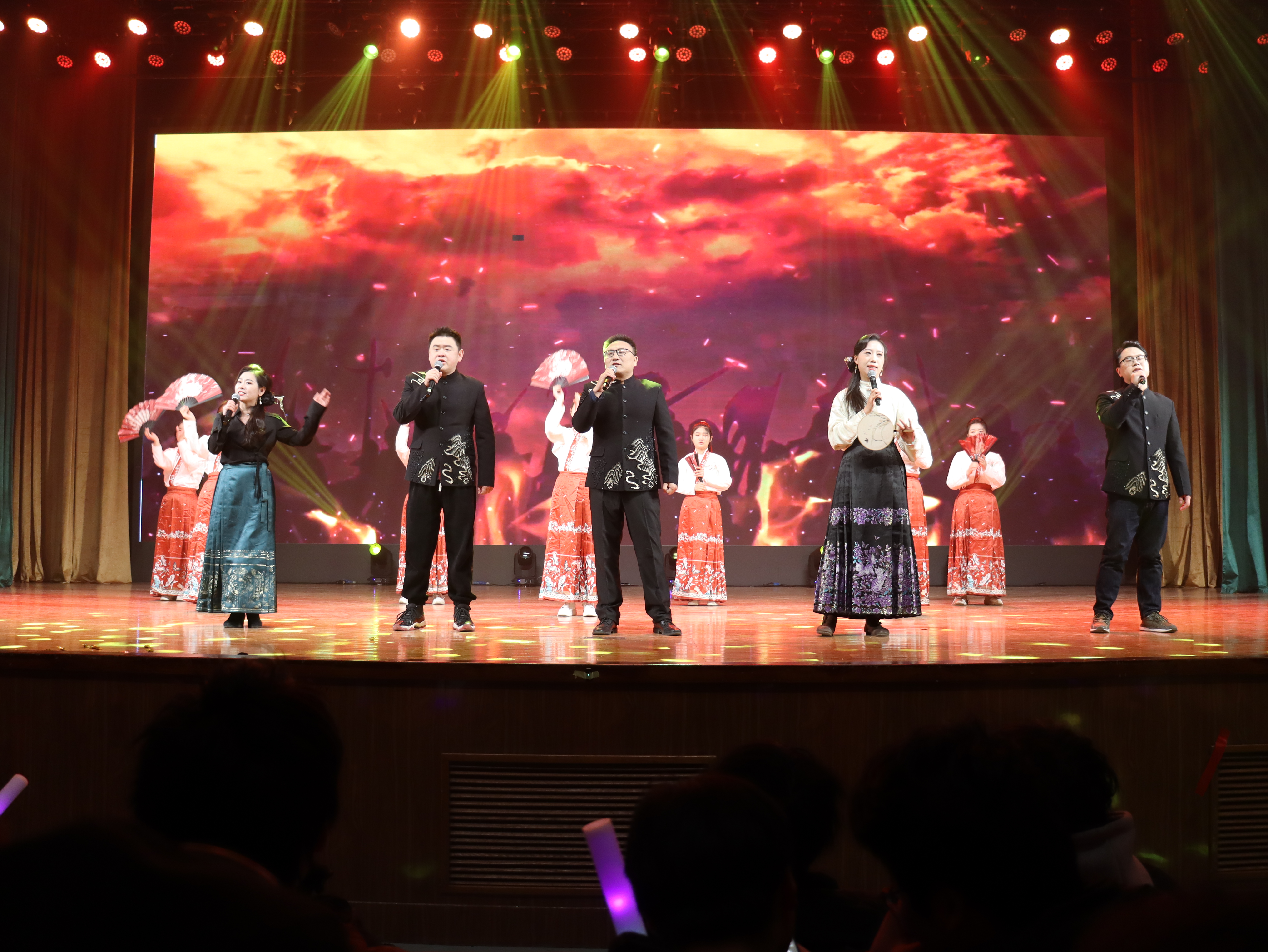 在激烈昂扬的合诵后,晚会走向第三篇章“展望·辉煌未来”,灯光再次亮起,诙谐幽默的小品《终极健身计划》登台表演,在一句句打趣似的对话中,探讨着健康生活的重要性,倡导“强身健体”的生活方式;歌伴舞《稻香》的歌声缓缓的传来,曲终之时,充满活力的舞蹈《你要跳舞吗》随之响起,调动起现场情绪,把晚会氛围推向高潮;最后,深情优美的歌伴舞《如愿》在场馆中唱响,寓意着所有美好的愿望都能成真,也正寄托着师生们对美好生活最诚挚的祝福,晚会就此落下帷幕。