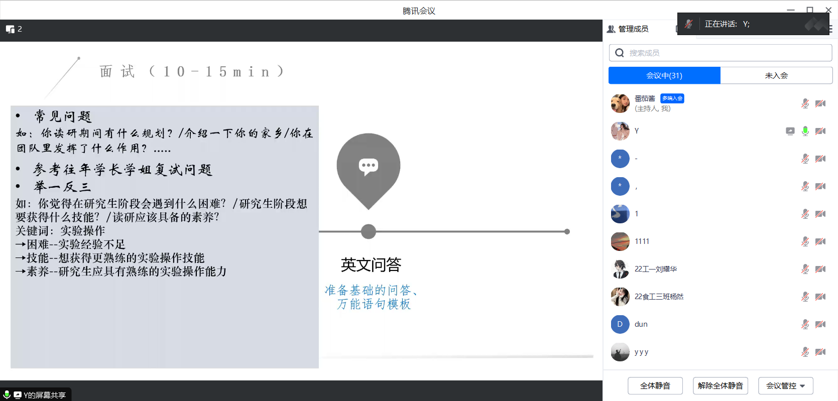 杨玉甜从复试资料准备、笔试和面试三方面展开详细介绍并结合自身经历,向同学们推荐了几位学习up主,希望能够带给同学们一些帮助。她认为,良好的心态是取得优秀成绩的基础,实事求是是面试成功的关键,面对老师的提问,同学们要端正态度,认真回答。