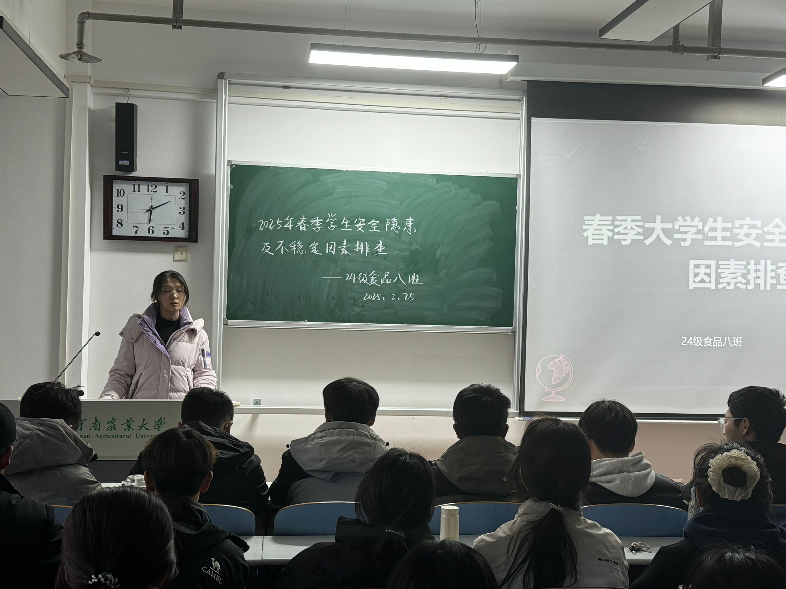 安全稳定的学习生活环境。各班级通过主题班会、学生座谈等形式,深入摸排学生的思想动态,重点关注学生参与线上线下活动的情况。同时,学院积极关注2025届毕业生思想与心理状况,通过职业规划指导、就业信息推送、困难帮扶,引导毕业生树立正确三观,以良好心态迎接未来挑战。