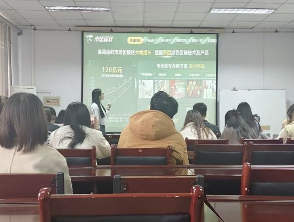 本次比赛分为初赛与决赛两部分;初赛有28个团队参赛,决赛有14个团队参赛,各队按照抽签顺序有序进行。每队的代表人分别从项目的背景、发展、研究过程、问题及解决方案等方面介绍自己的项目,并进行参赛方案展示,限时三分钟,他们在有限的时间里讲述着自己的高远志向和愿景,结束后对于评委老师们的疑问做出耐心的解答,虚心接受并采纳老师所指出的不足与缺点,不断完善、力求完美。
