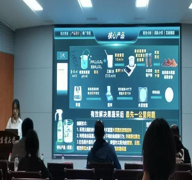 本次比赛共有12个项目参赛,各队按照顺序有序进行。每队的项目负责人分别从产品介绍、核心技术、市场分析、团队情况及发展规划等方面进行了全面,细致的讲解,展现出同学们丰富的想象力和扎实的专业知识。在提问环节,评委老师们针对项目的创新性、可行性、市场前景等方面进行了专业而犀利的提问,同时给予了很多宝贵的建议,为参赛团队进一步完善项目提供了方向。