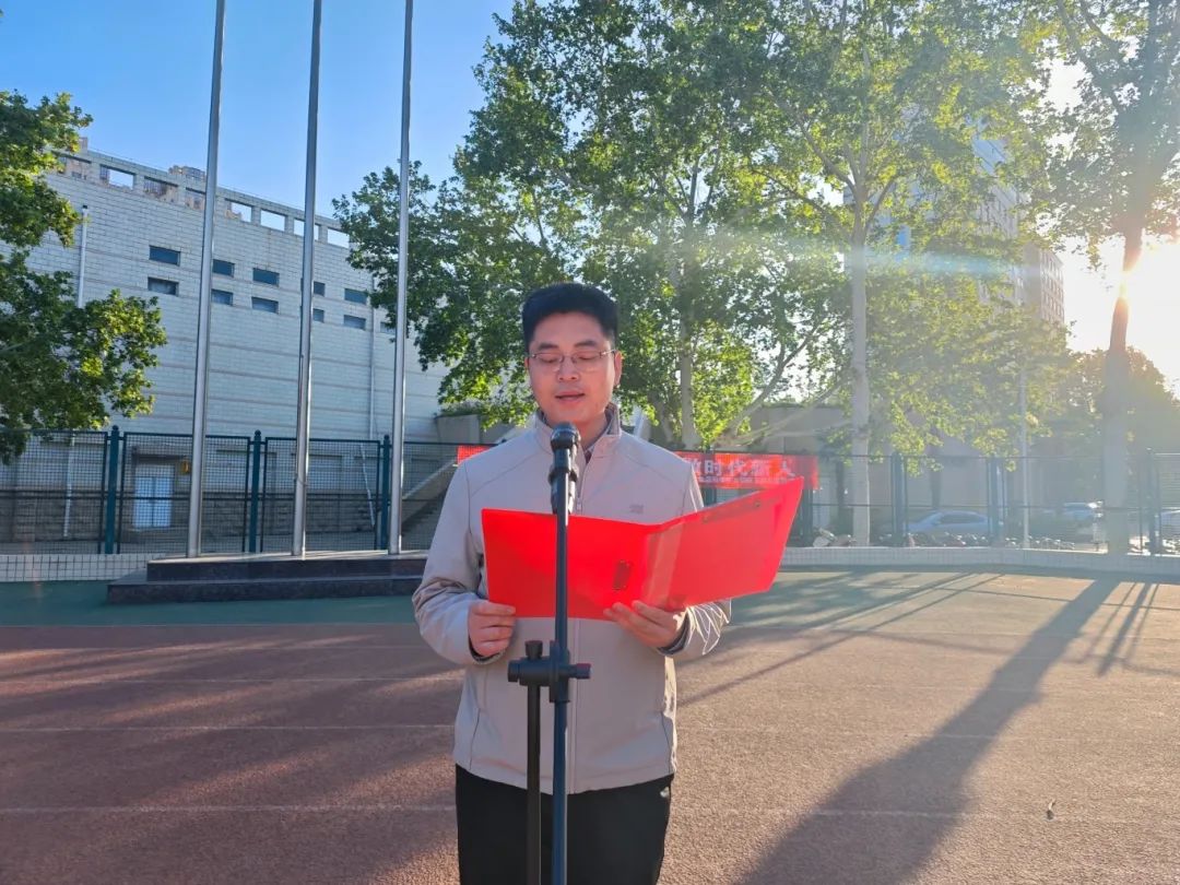 于文化路校区举办“筑牢国安防线,争做时代新人”升国旗仪式。院党委副书记焦帅、团委副书记张金龙、辅导员丁明明及学院全体在校生参加。本次仪式由张金龙主持。