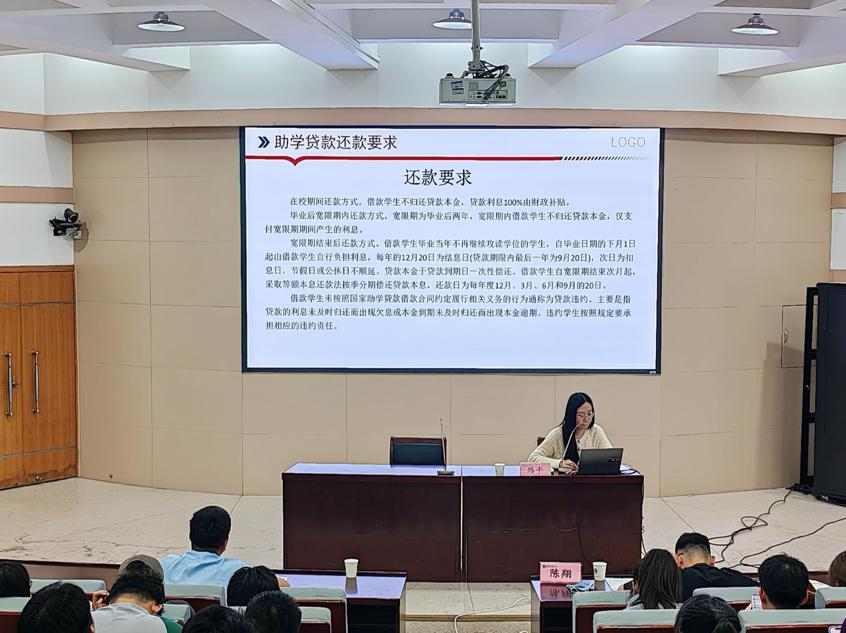 随后,在助学贷款还款方面,介绍了其还款要求、还款方式、违约责任、失信惩戒,引导学生正确认知征信记录管理要求,严格履行还款义务,依约按期偿付本息,有效防范因违约行为引发的信用风险。