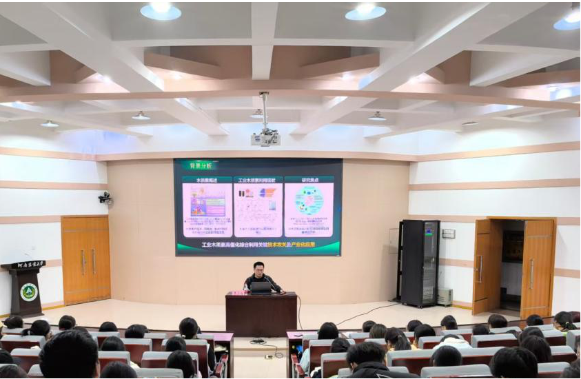 李占超系统梳理了木质素类衍生材料的发展历程、产业现状、核心工艺及其在食品保鲜中的功能实现。他从木质素“从工业副产物到高值保鲜材料”的转型升级讲起,深入分析了绿色包装的产能变化与市场前景;详细解读了木质素的提取、改性及保鲜制剂制备等关键技术,并与传统化学保鲜剂进行对比,突显其环保与性能双重优势。结合食品行业绿色化发展趋势,他强调木质素材料在安全、环保与保鲜效果方面的综合潜力,并进一步介绍了木质素纳米复合材料、智能保鲜膜等前沿研究方向,拓展了同学们的科技视野。