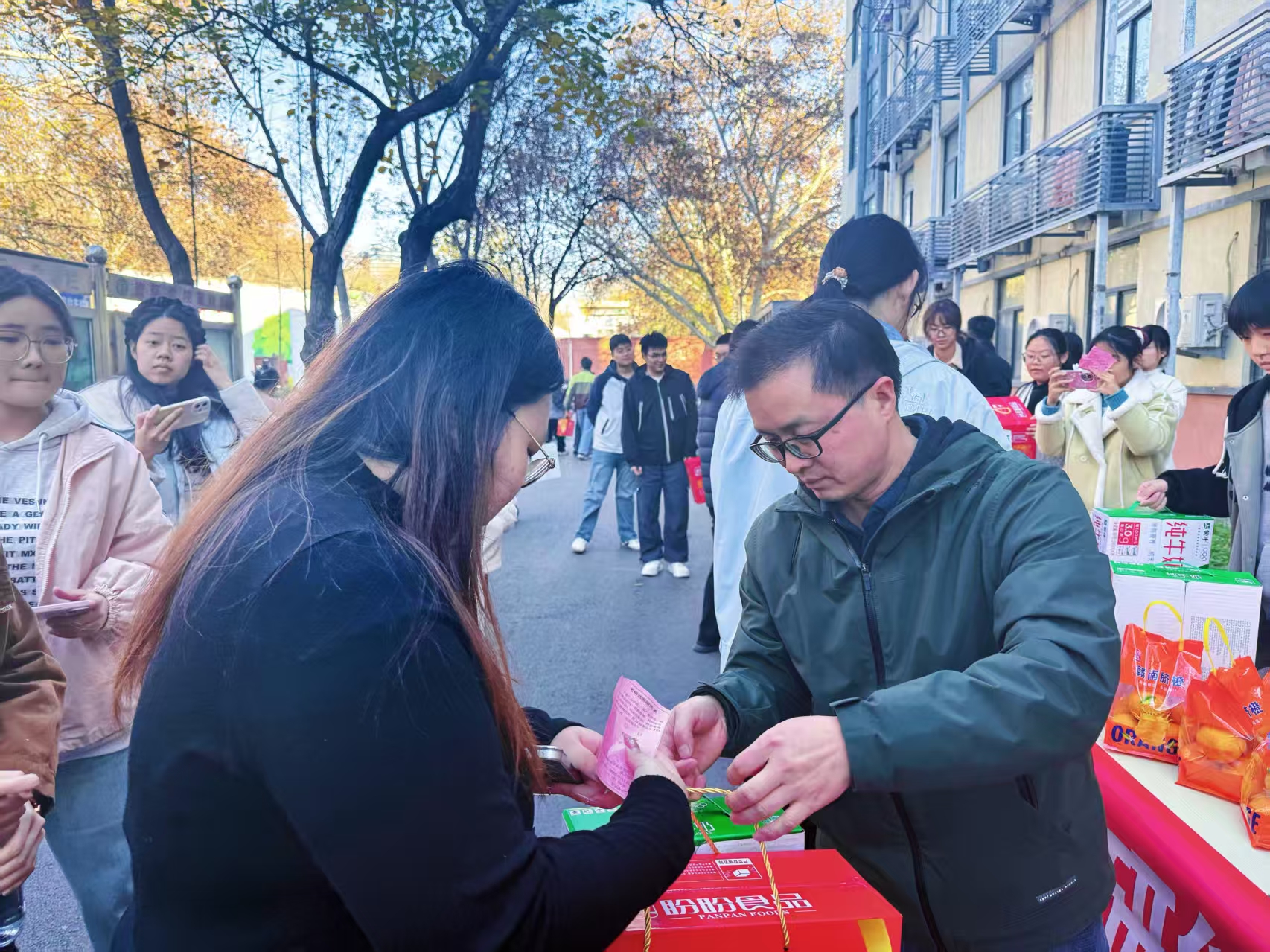 于文化路校区12号楼楼下隆重举办考研送温暖活动。院党委书记吴旭静、党委副书记焦帅、副院长张剑、谢新华、团委书记路平、党委组织员陈翔、团委副书记张金龙及22级全体考研学子共同参与了此次活动。