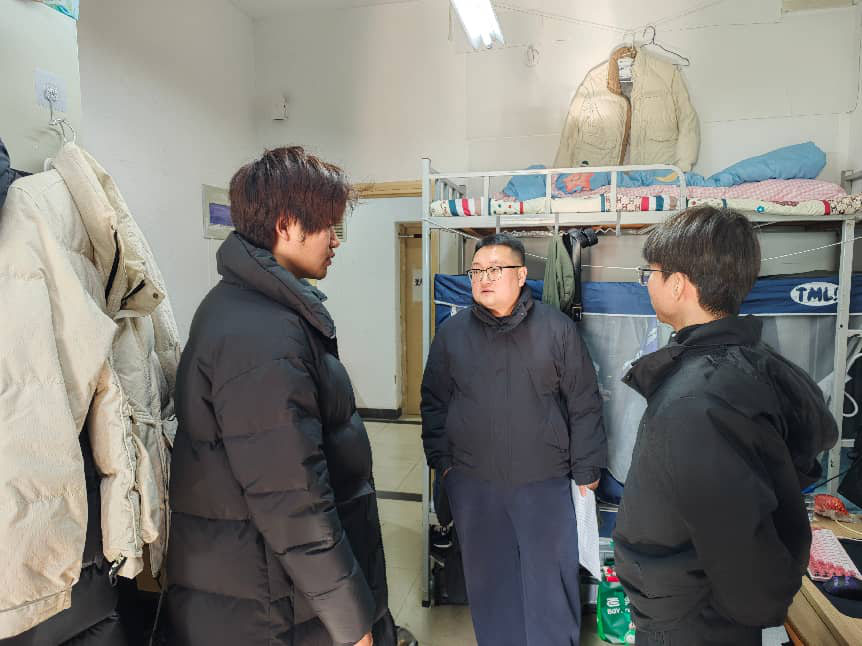 1月7日,院党委组织员陈翔、团委副书记张金龙、辅导员喻颢如、银峰、班主任老师深入学生宿舍进行走访排查。在排查中,老师们围绕用电安全,卫生状况等方面展开了细致检查,叮嘱同学们重视宿舍用电安全,自觉维护宿舍卫生环境,同时对正在积极备考的同学们表达慰问,了解大家的复习进展与生活需求,提醒注意防寒保暖、合理作息,并且鼓励同学们保持积极乐观的心态,以最佳状态迎接考试。此外,老师们着重开展诚信考试教育,引导同学树立正确的应考观念,维护公平公正的考试环境。