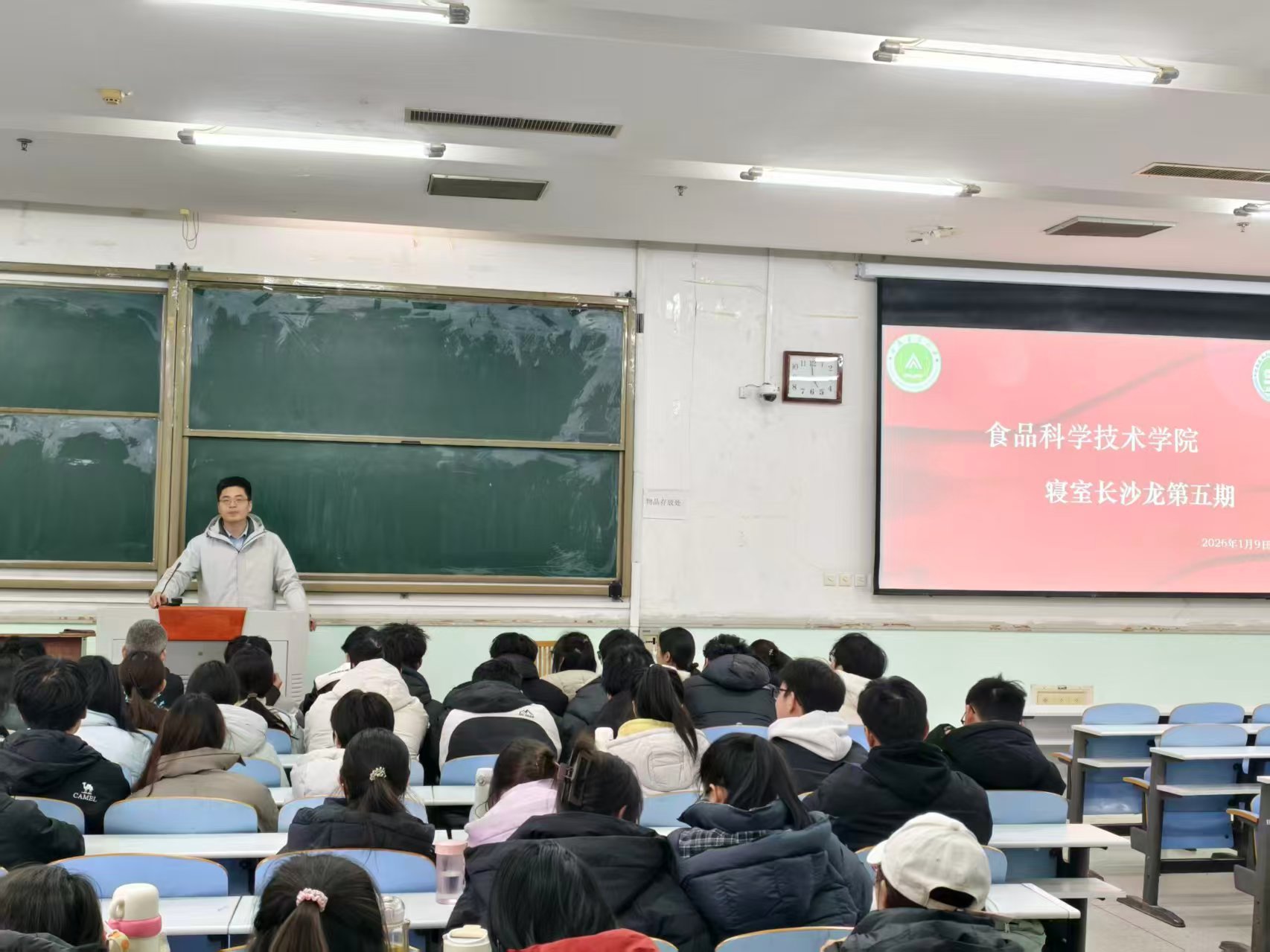 于文化路校区工程楼101教室召开寝室长会议。院团委书记张金龙、院学生会生保部成员、2025级全体寝室长以及各班班长、团支书共同参与,围绕宿舍建设与学期末相关工作展开深入交流。