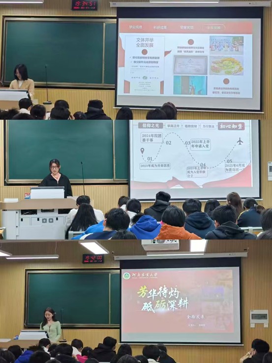 在文化路校区3号楼304教室举办“榜样领航·筑梦前行”优秀获奖学生经验分享会。活动特邀2023级国奖获得者苏彦颖、胡俊菡,2024级牧原奖学金获得者李佳慧进行分享。