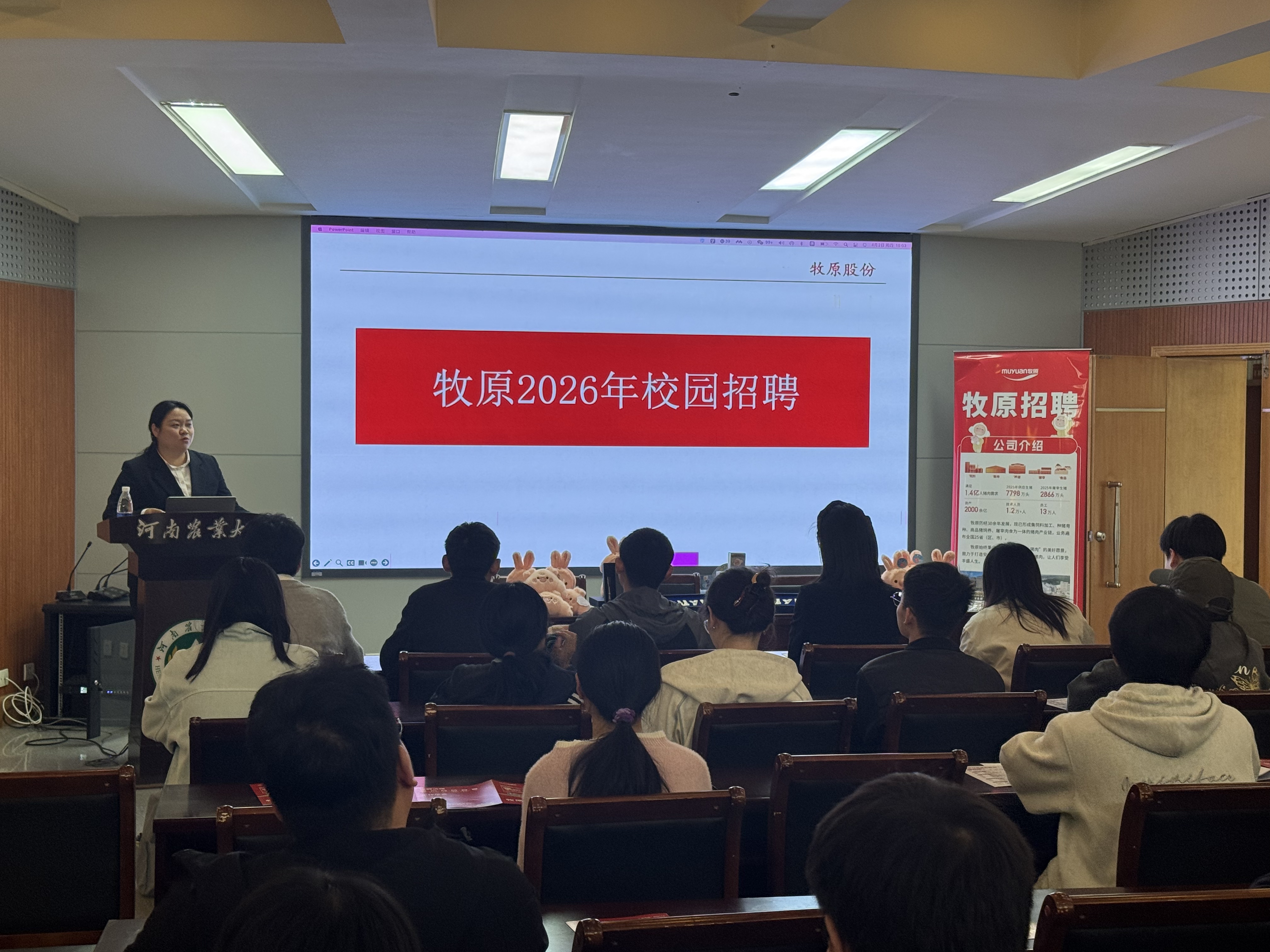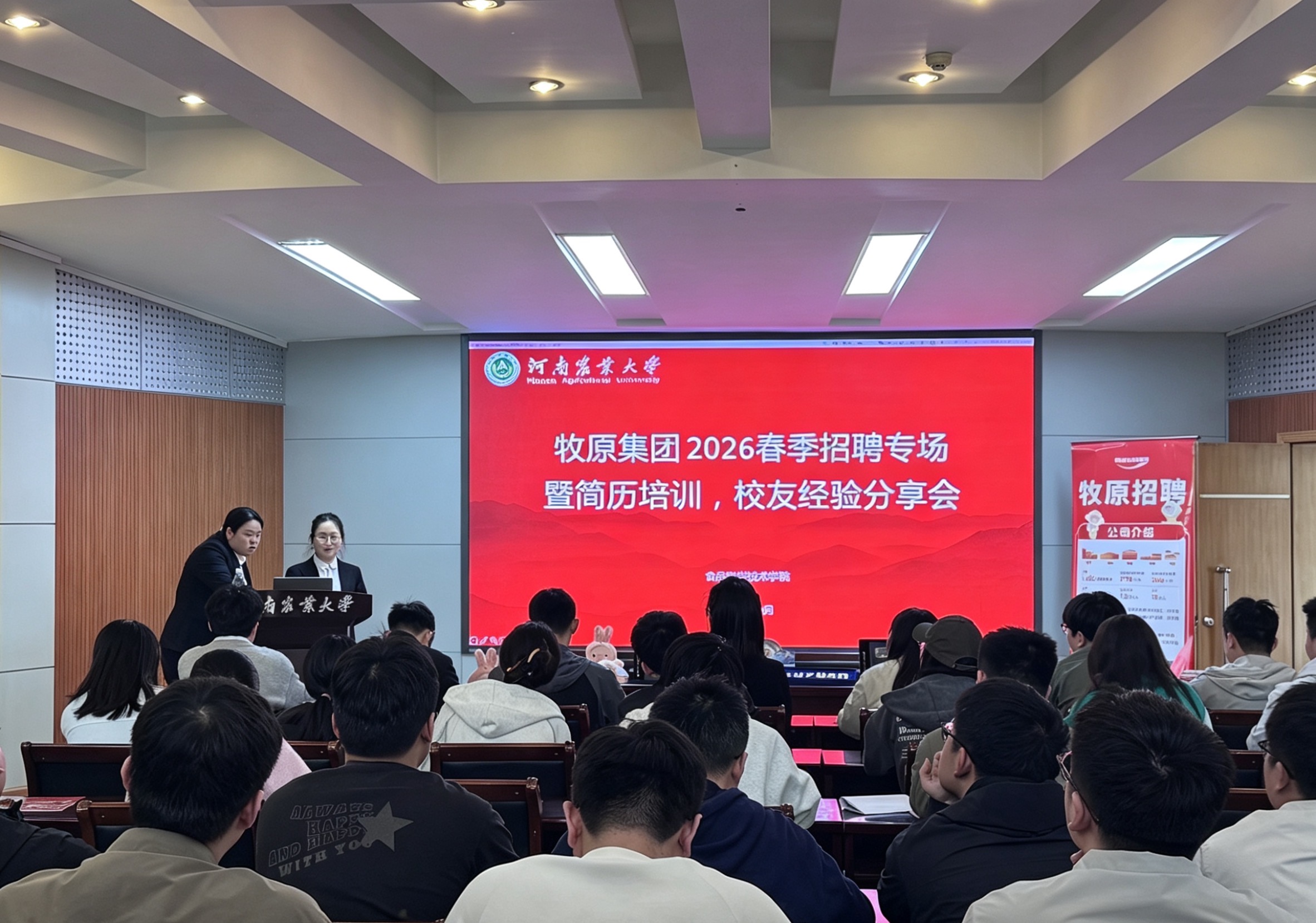 (通讯员 杨阔)为扎实推进2026届毕业生就业工作,精准对接食品相关专业人才需求,以优质岗位与校友经验双赋能助力学子高质量就业。4月2日,牧原集团2026春季招聘品控官岗位专场宣讲会在文化路校区100人报告厅顺利举行。