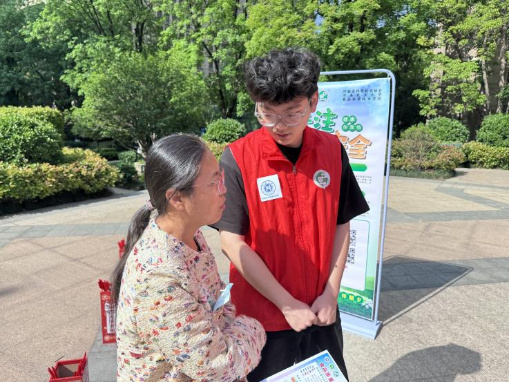 活动现场,实践团队通过悬挂主题宣传条幅、摆放科普展板、发放知识宣传彩页、播放食品安全科普视频,组织居民扫码学习食品安全控制知识等多元化形式,以亲民务实的态度,为社区居民带来了一场贴近生活的食品安全科普宣传。本次科普宣传依据《中华人民共和国食品安全法》,针对社区居民特点,围绕中国居民膳食宝塔解读、特殊人群膳食安全注意事项、网络食品安全、转基因食品安全性等居民日常关注的热点内容,团队用通俗易懂的语言,为居民解读食品安全专业知识,传递科学健康的膳食理念。